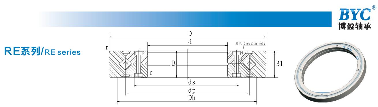Product FeaturesBYC Crossed roller bearings are lightweight, compact bearings with thinnest possible inner and outer rings with high rigidity, because of its vertical arrangement of cylindrical rollers with a 90°V groove through the separate spacers in the deep groove rolling surface. This special design allows just one bearing to carry loads in all directions including radial, axial and moment loads.